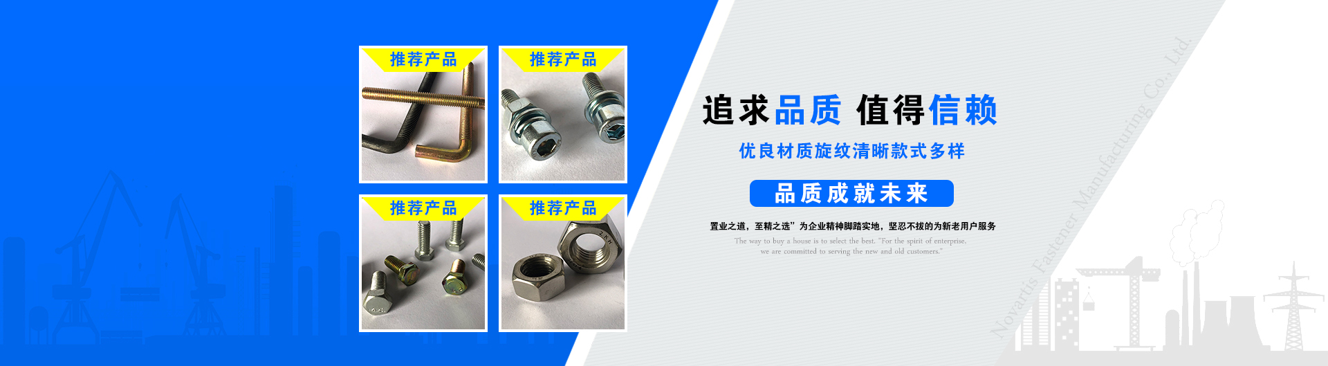 邯鄲市諾華緊固件制造有限公司嚴格控制整個工藝流程、嚴把質量關,的生產工藝,為客戶提供可靠的產品,公司秉承“置業之道,至精之選”為企業精神,腳踏實地,堅忍不拔的為新老用戶服務。公司總經理杜鵬先生為人誠信...